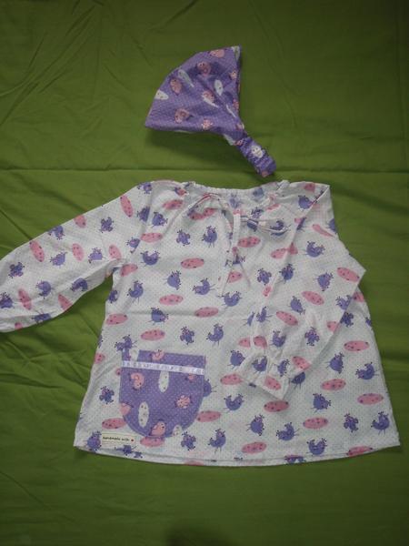 Takze jsem usila halenku doplnenou celenkou. Strih nic moc (Burda) - vystrih to chce vetsi a halenku celou delsi. Kratasky na telocvik, saty se stareho trika Klarky a meho (na fotce jsou krive, ale ve skutecnosti to tak neni).