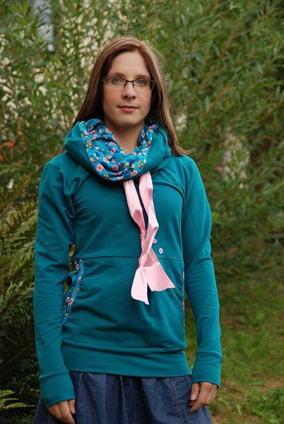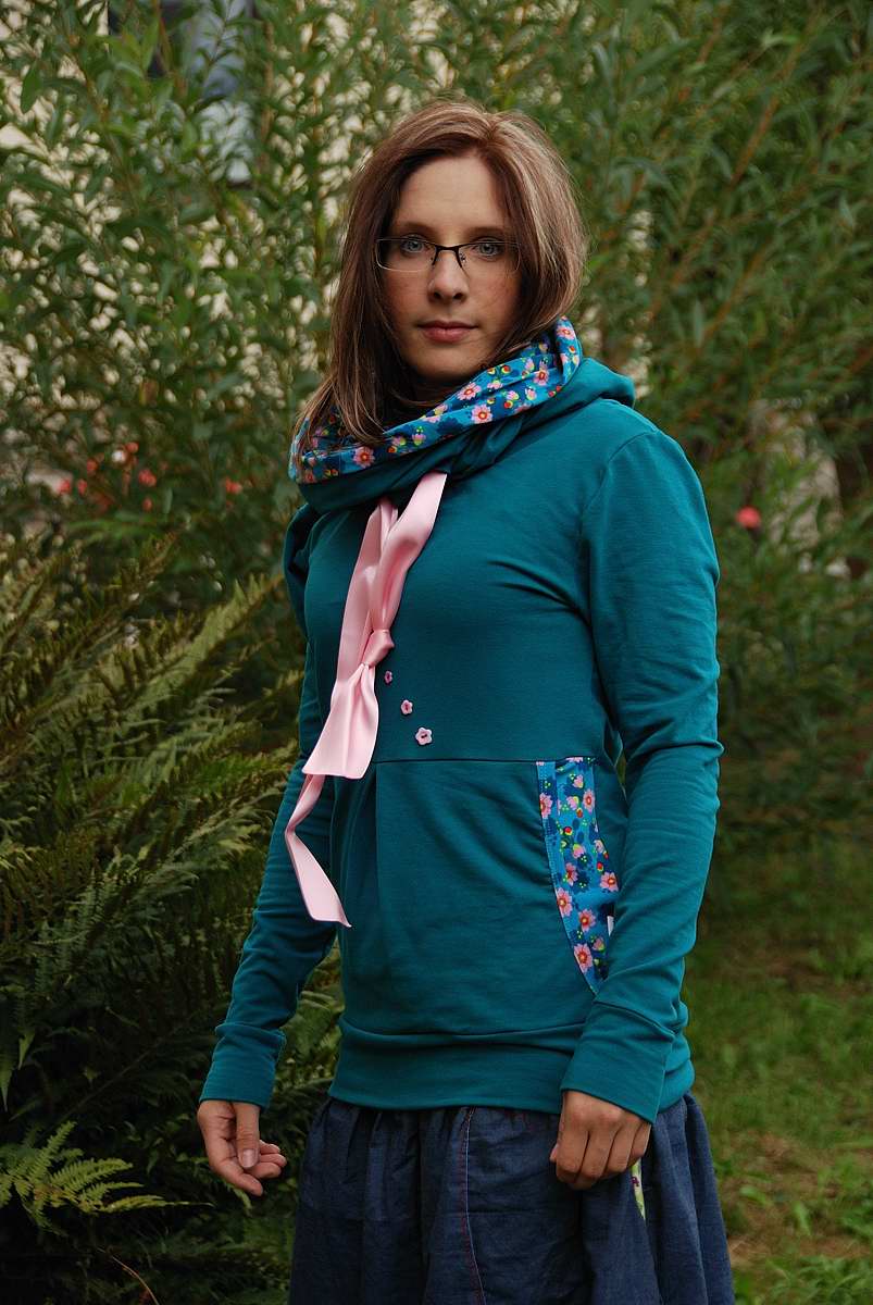 Holky díky, ale nic není pro mě, včera v noci jsem to vystavila na FB a rozebralo se během pěti minut a to mi moje sestřenka (která mě nemá ráda) napsala, že jí chce taky, ovšem ona je korpulentnější postavy, což znamená ušít novou, a pak mi psala mamka, že by se jí taky líbila, tak jsem jí napsala, že pokud chce mít stejnou mikinu jako neteř že mi to je fuk, celkově mi z toho bylo do breku, no ale to je prostě osud, že ☹ jediný co zůstane mi sukně 😀