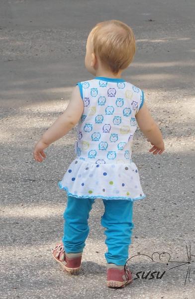 @macin73 je to amelie podle oka, prostě jsem ji kus pod pažemi rozšmikla a přidala na obou dílech na švy, aby nebyla pak kratší (délka se může ustřihnou vždycky 🙂 ). Ten kanýrek je tak, že spodní díl začistím obyčejným švem na OL, vrchní díl začistím úzkým obrubovacím stehem (nebo jak se jmenuje, je to ten 3nitný), diferenciál dám, aby to látku roztahovalo, ale jinak ji nijak netahám. A pak ten vrchní díl položím na ten spodní a prošiju, takže je tam jakoby "našitý". A nakonec prstama roztáhnu ten kanýrek, aby se vlnil. On by se dal roztáhnout i před našitím, ale takto se to našívá jednodušeji. Jinak je to super způsob, jak vyšít menší kousky látek. Ta "srnečková" tunika má stejně řešený i ZD.