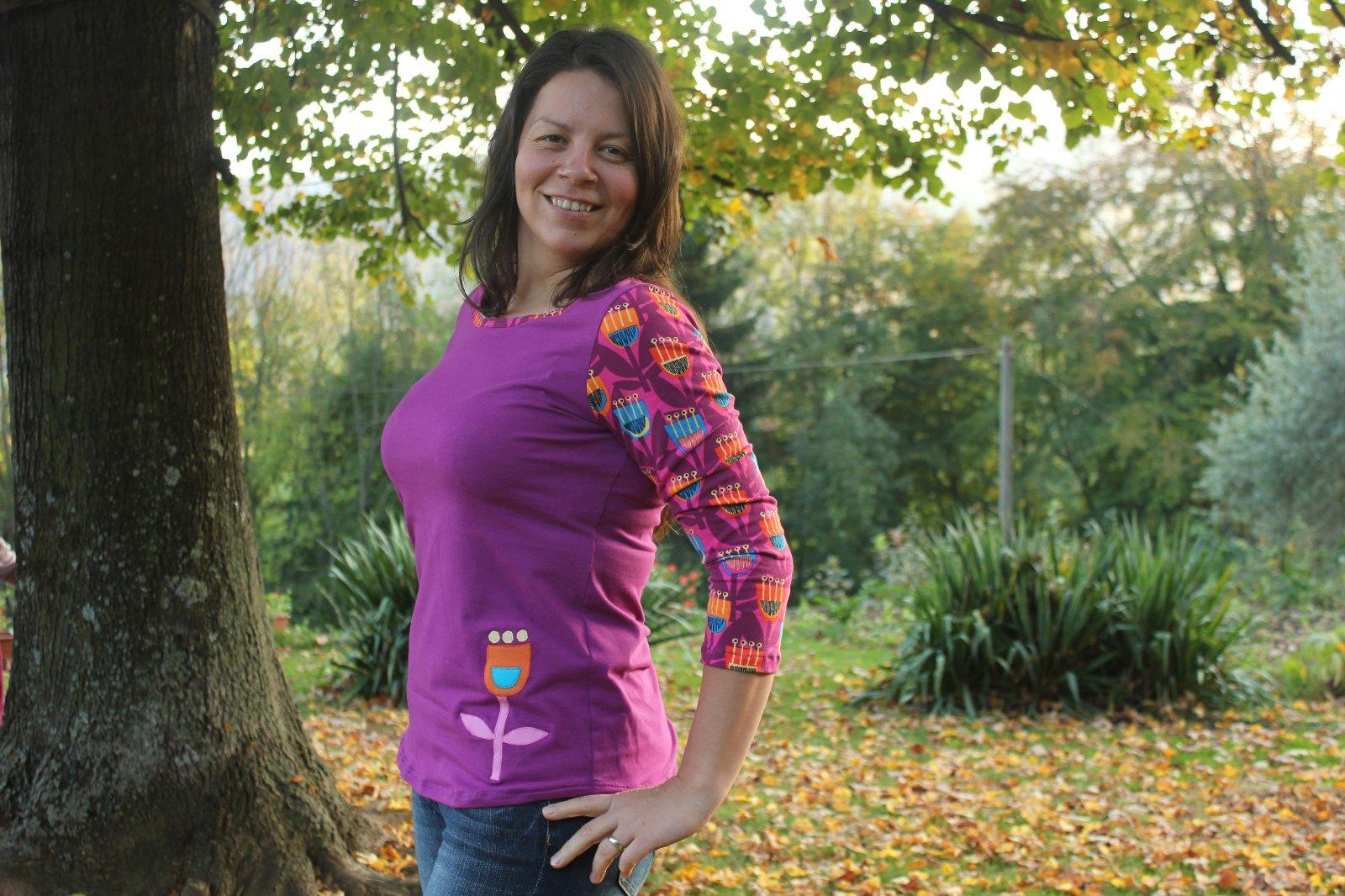 Tak po dni stráveném úklidem a na lešení měřením, montováním a natíráním palubovek / podbití vkládám slíbené foto. Nakonec jsem přece jen fotila na zemi, ale abyste neřekly, vkládám i jednu bezhlavou selfie 😀 (mimochodem, u naší nové, téměř dokončené fasády 😎 ). Jinak vnitřní triko je recyklace mého starého letního tílka Benetton, které se beztak už tak srazilo, že bych si ho na sebe stejně už nikdy nevzala.