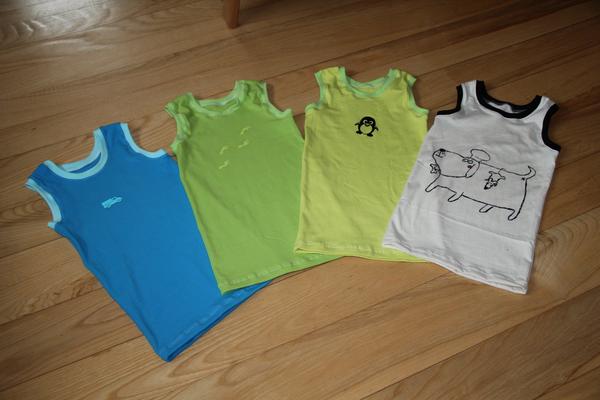 jinak taky přidávám pár počinů 😉 opět zateplené gatě,sada pro bratrancovo malou a pak pro našeho prcka 🙂 zjistila jsem že potřebuje doplnit garderobu 😉 takže 3 trička s dl. rukávem a 4 tílka 😉 za to tričko s rytířem mi zlíbal ruce bobek malej 😀 😀