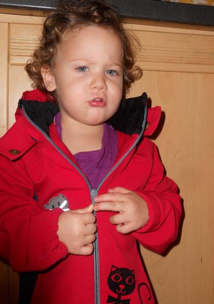 dcerka má kuklu, protože cokoli jiného okamžitě serve z hlavy. I tu kuklu už si umí svléknout, potvora. Ale můj sen o roztomilé elegantní malinké holčičce je v tahu, mám tankistu ve fialovém kabátku 😀