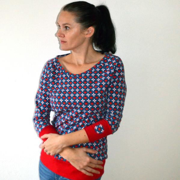 @caramilla moc pěkná kombinace u toho dětského trika (ta granátová jablka mě v té Tvé kombinaci taky mile překvapila, protože jinak se mi ta látka vůbec nelíbí), jen se chci zeptat na ten výstřih - děláš ho schválně takový větší a jakoby volnější, nebo jak to napsat? asi jak mám problémy s krční páteří, tak mě ofouklo už jen při pohledu na něj 😝 😀 😀 😀