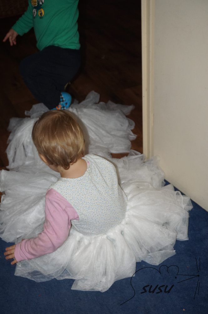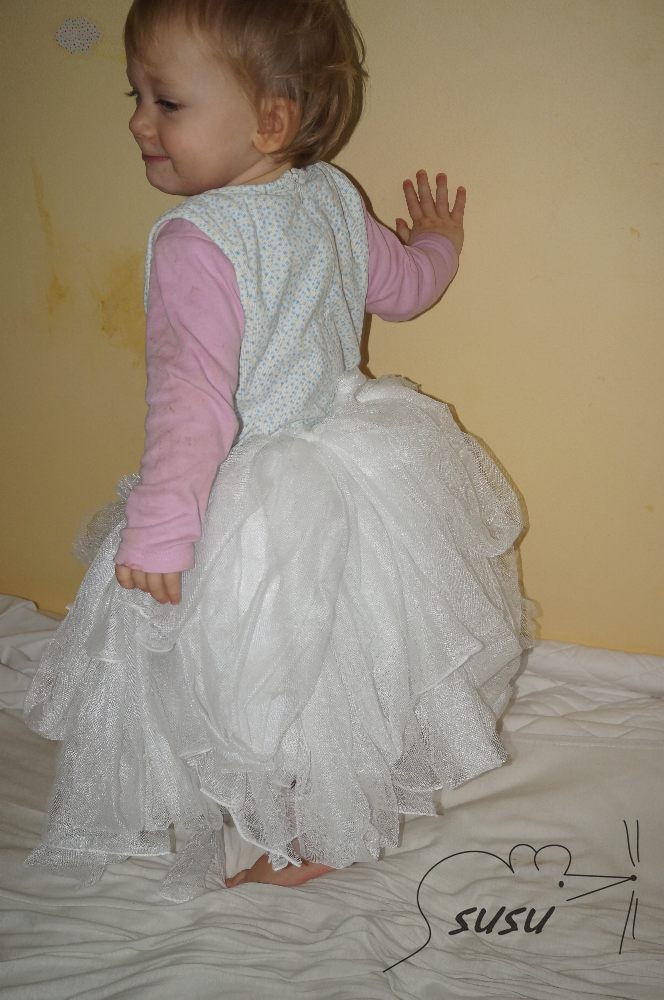 jedna dnešní andělíčkovská sukýnka ze staré záclony a bez šití za 20 minut. návod zde http://rachaelrabbit.blogspot.cz/2013/01/tutu-t...