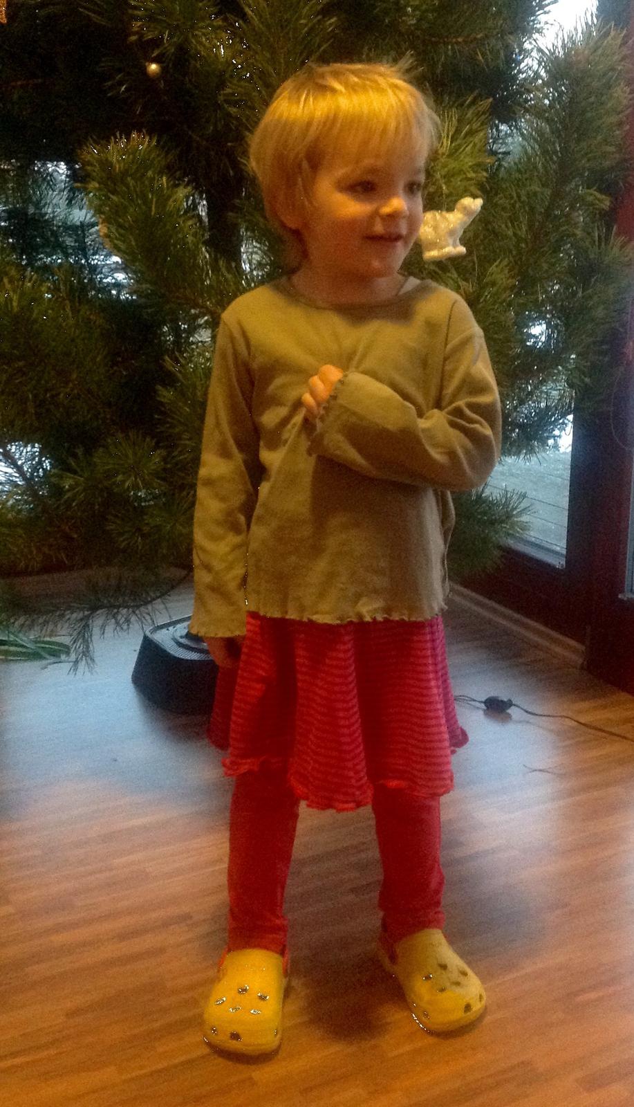 Přeji opožděně vše nej v roce 2015 hlavně ostrou jehlu a nůžky. Vánoční dárek pro Veroniku - povlečení na velkou peřinu a pyžamko k tomu. Povídala, že ježíšek to špatně koupil protože je jí velký ( mamka by to prý udělala líp) a potom moje vánoční šaty ke srromku a do divadla, kalhoty ze kterých jsem si nakonec udělala slimky do kozaček a zásťerky do školky ke kuchyňce. A poslední je sukýnka , protože Všechny holčičky maminko mají ve školce sukni a všechny mají dlouhé vlasy. A k vaší debatě o sušičkách a myčkách. Sušičku nemáme, ale zato myčky máme dvě. Druhou koupil manžel, když jsem byla sVeru na táboře 14 dní, aby to nemusel vyskládácat do skříněk. Tak z umyté si bere čisté a dává do druhé špinavé. To co potom v čisté zůstane už se uklidí. 😄 omlouvám se za kvalitu fotek. Neco foceno tabletem a kalhoty jsou na mém zadku, ale asi neumím fotit samospouští. Nechce mě to zaostřit. Chyba je ale určitě v rukách a v přečtení si návodu. 😉