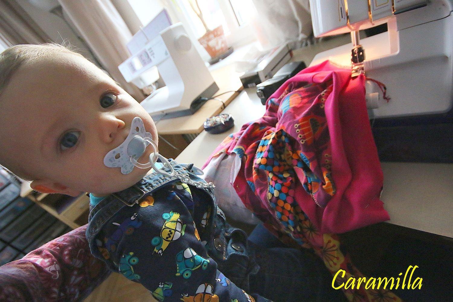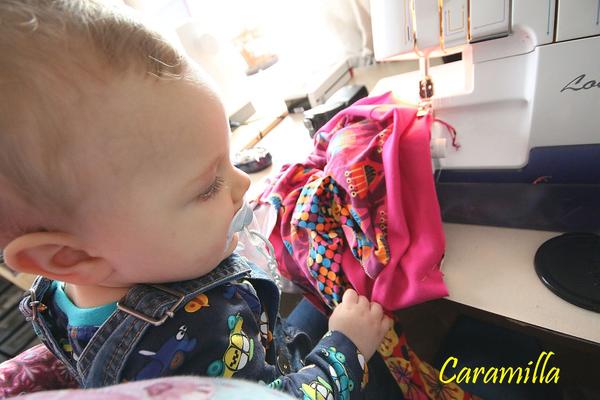 @daisyr No, moc to nejde, šila jsem asi 5 minut a Kryštof se u toho kroutil, chtěl pryč, pak zase chtěl nahoru, takže jsem toho pak nechala, fotka je spíš tak pro pobavení. Včera jsem s ním ale šila asi 15 minut a to koukal a zajímalo ho to, záleží, jakou má náladu, dneska celý den špatnou 😒