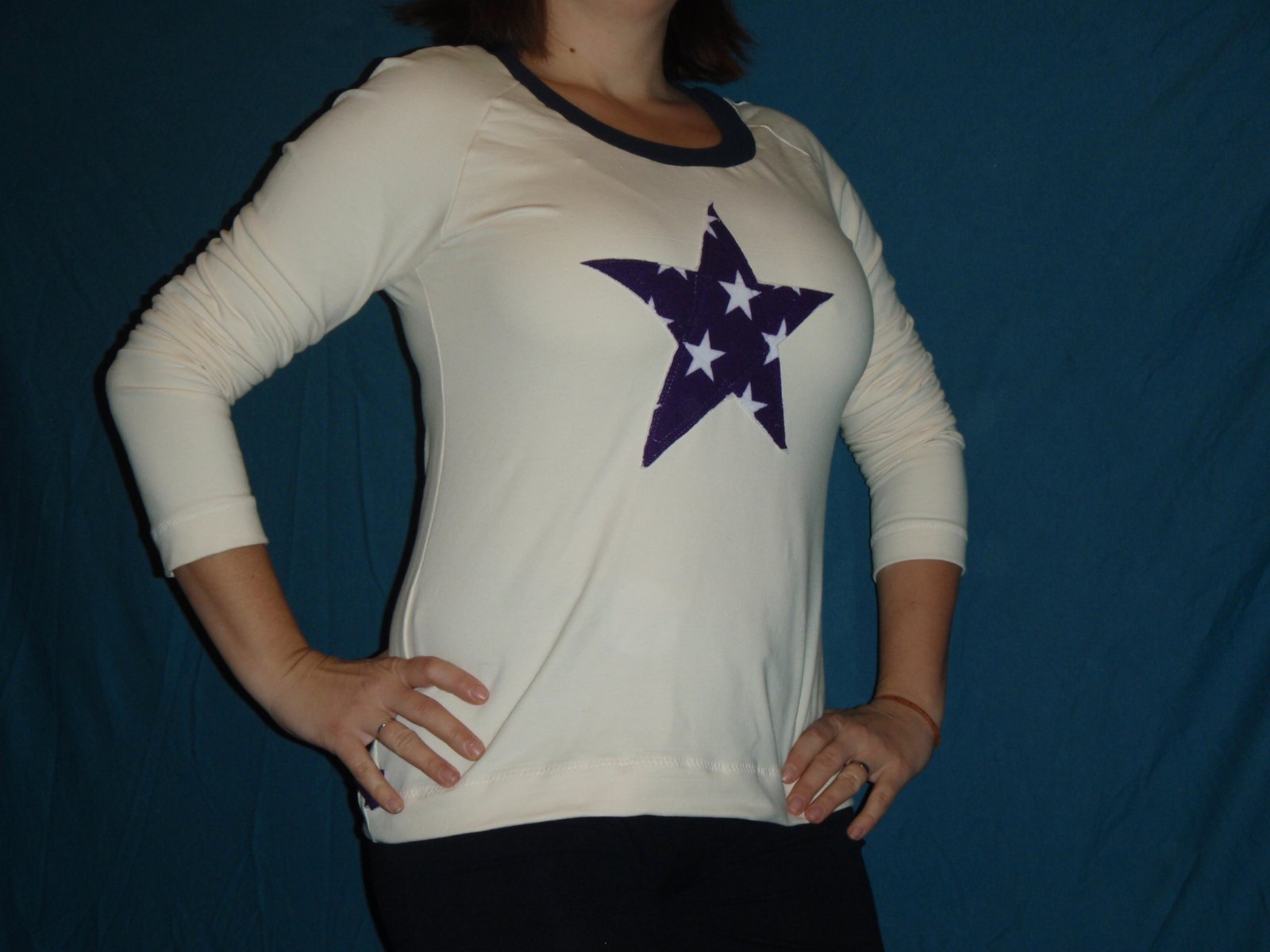Taky jsem si vyzkousela sit zase po delsi dobe pro sebe. Mam ukrutny nedostatek tricek a v obchodech nemuzu poradne nic najit, co by melo poradnou gramaz a pekny strih.