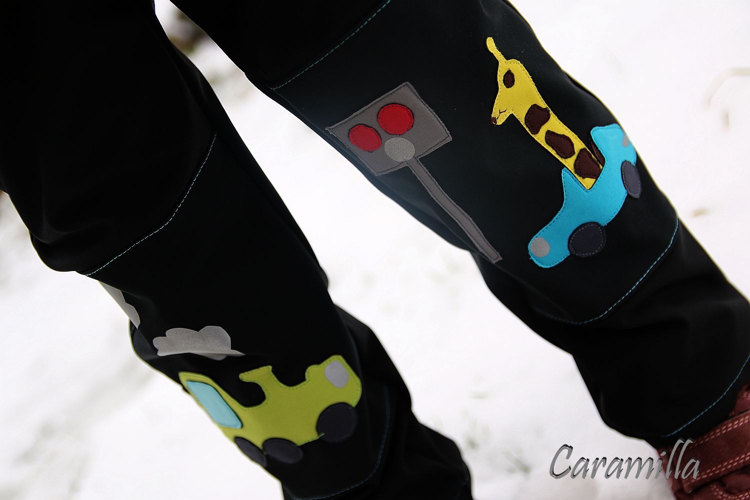Softky pro Šimona a Matouše, už asi 2 měsíce slibované, tak jsem je konečně i přes nepřízně osudu dokonala 😀 Návrh si dělali kluci sami, tu žirafu, jak řídí auto, to by totiž dospělý nevymyslel 😀