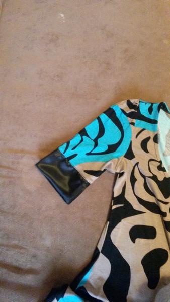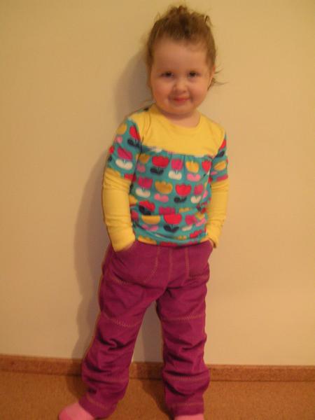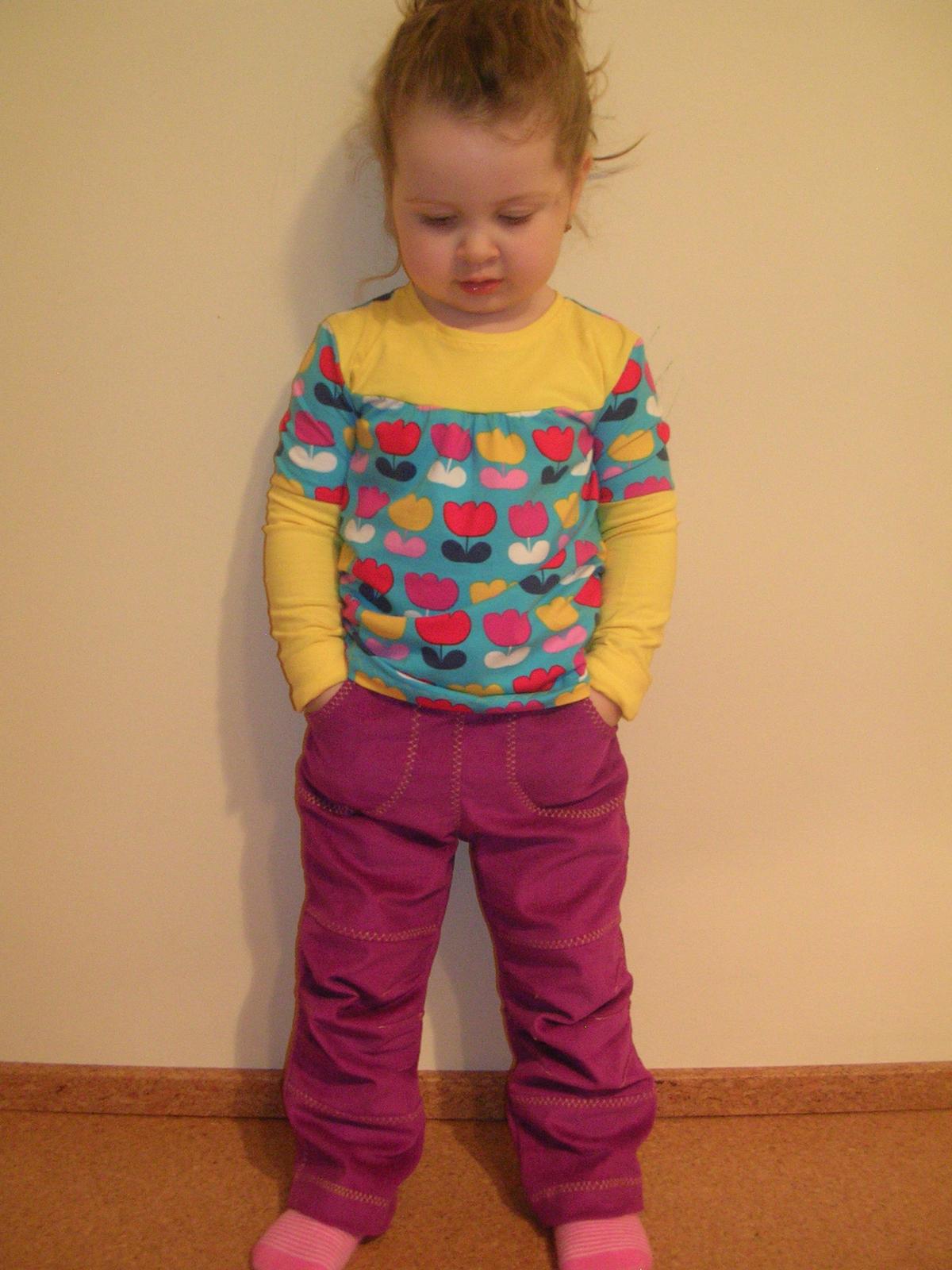 Jinak vám všem děkuji za chválu. 😉 A jsem ráda i za kritiku 😉 Jinak je to střih z Ottobre a přidala jsem si (vyloženě jsem teda pajcla vás) ty náplety na rukávech a dole. Dole to byla nutnost, abych měla tričko dlouhý, protože jsem měla málo látky.