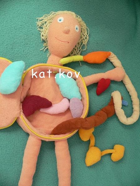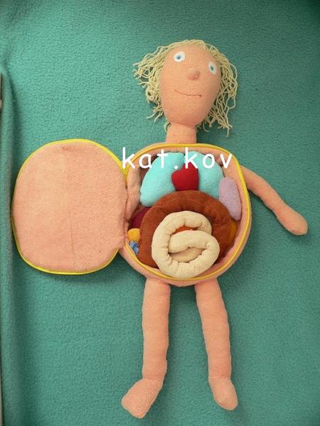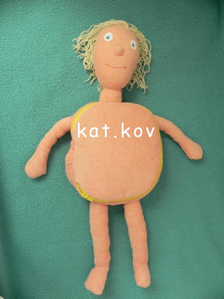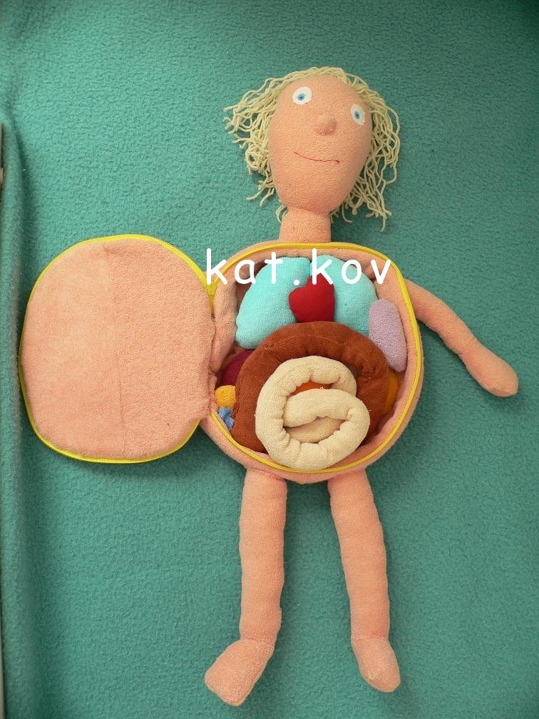 Inak mne to príde ako veľmi poučná hračka, ale ja som veterinárka, tak mám možno profesionálnu deformáciu 😀 A hneď ako sa ma E. začala vypytovať, čo mi to škrundá v bruchu (fonendoskopom si bežne počúvajú holky brušká a srdiečka doma, takým naozajstným, nie hračkárskym, ten ich moc nenadchol), tak som jej to vysvelovala, lebo ona mi stále tvrdila, že máme v bruchu chrobáčiky😀 A potom som hladala na nete Erwina, ale stojí strašné peniaze, tak som sa rozhodla ho ušiť. http://www.boom-babyshop.cz/erwin-maly-pacient-...