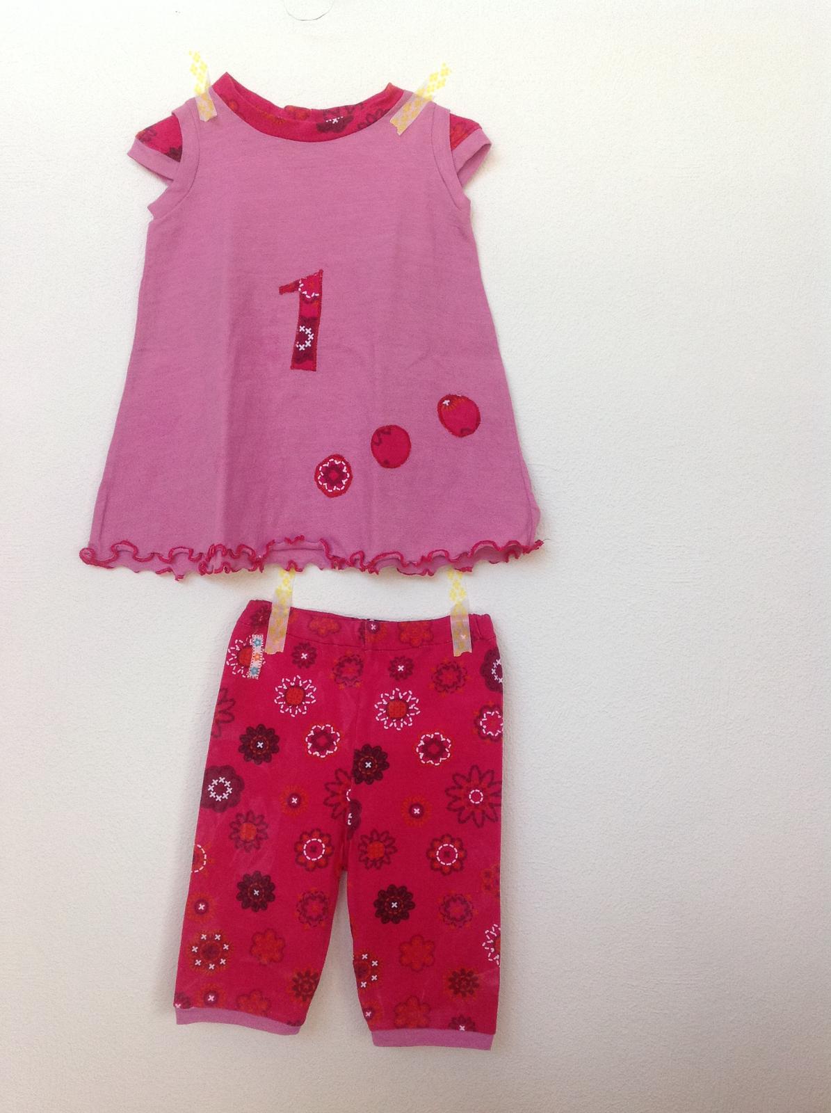 Přidávám fotku kompletu pro neteř k prvním narozeninám. Zítra jsede slavit, tak snad bude mít úspěch. Nejprve jsem to chtěla vyfotit na naší Báře, je o dva měsíme mladší, ale o dost menší. Vzhledem k tomu, že brácha má přes 2 metry a vypadáme vedle sebe jak Křemílek a Vochomůrka. Je to velikost 86 a Bára 68 skoro😊