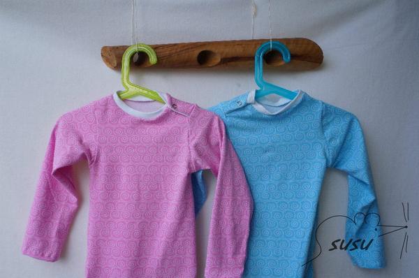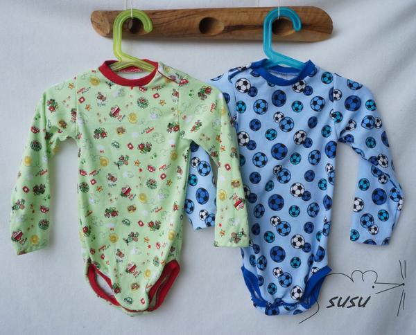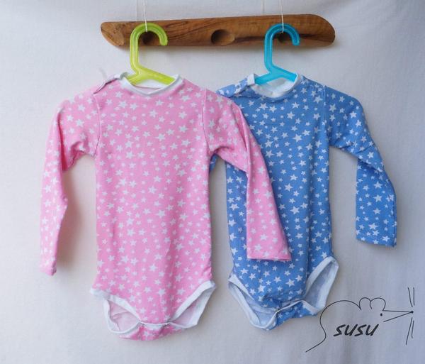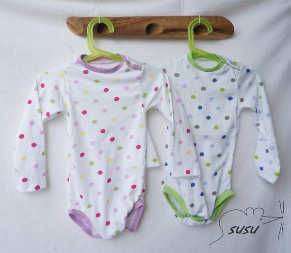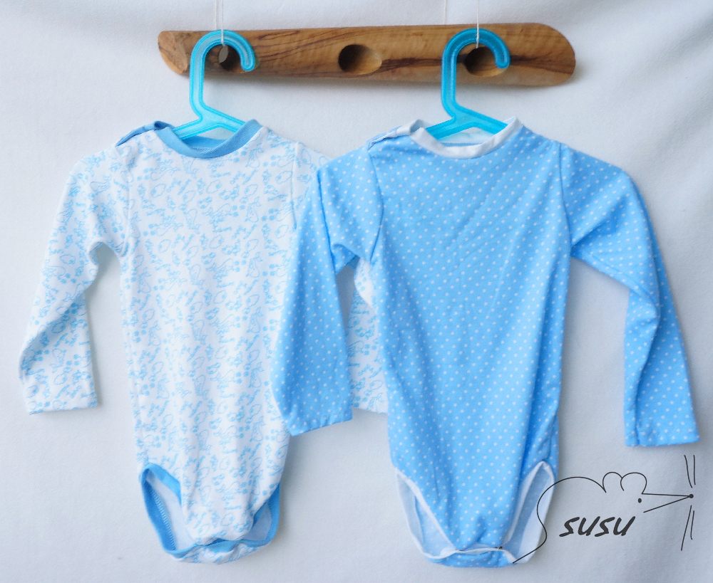 pár bodýček. Prosím nevšímejte si drobných nedostatků v šití. Občas mi něco ujelo, ale na to že mi to smečka okamžitě zaprasí, tak už jsem to nepřešívala. Už mi zas ze všeho vyrostli, tak přemýšlím, jestli nemám střihnout ještě jednu várku. Ale teda patentkování je šílený i s kleštěma. Nesnáším baby druky. Trvalo to dýl jak celý bodyna.