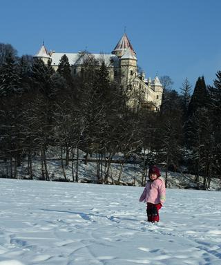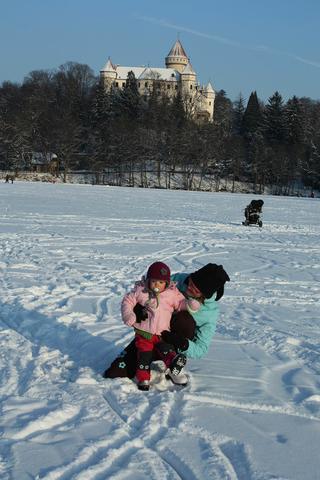 Jinak jsem chtěla využít dnešního dokonalého počasí a jít bruslit na Konopišťský obrovský rybník, dokud nezapadá úplně sněhem. Od nás to tam je 30 minut rychlé, super rychlé chůze. Takže 30 minut cesta a už jsem funěla, tam jsem hodinu a třičtvrtě tahala Jasmínu po ledě - buď bruslila s ní v náručí, nebo jsem byla ohnutá a štrejchala nožkama o sníh a nebo v kočáru v těch 7 cm sněhu na ledě. Ona začala hystericky ječet, protože jí omrzaly palečky v botičkách (dala jsem jí malé sněhule - rep. bez nadměrku, protože ty o č. větší ztratila jednu botičku a nově objednané nestihly dneska přijít) - tak jsem ji naložila do kočáru a celou cestu domů (do kopce) běžela. Posledních 200 m jsem myslela, že ty nohy už se nepohnou. Doma plakala, jak to rozmrzalo, ale už to pak bylo dobrý a hrála si normálně. Ale já jsem totálně hotová. 2 hodiny jsem teď ležela v posteli a trochu se mi udělalo lépe. Ale necítím záda, nohy, zítra nevstanu z postele...