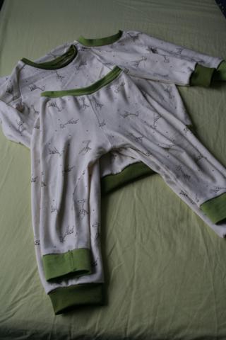 musím taky vyvěsit pyžama z žirafek - zatim se jeste nemuzu chlubit zadnyma slozitejsima vecma🙂 ale jsem z nich uplně nadšená, jsou tak heboučký a příjemný na omak... Náplety jsou z patentu z mylly a ten je taky úžasnej na omak - na menším je limetkový a to větší má náplety z olivového.