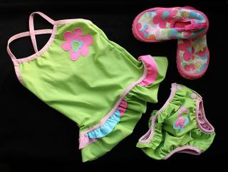 Plavečky jsou takovýhle, protože jsem koupila od nextu na mimibazaru jetý botičky do vody 😀 no a to prostě všechno musí ladit, že 😀 😀 😀 Zelená a modrá plavkovina od Sufika, zbytek PUL.