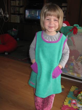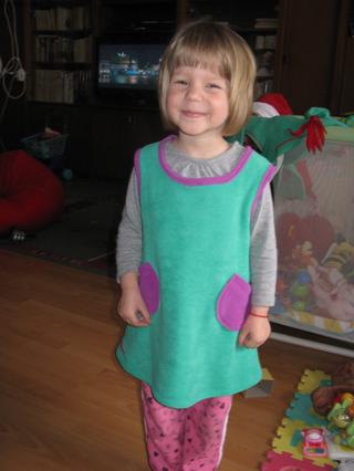 šaty som šila z flísu pridávam foto, akurát výstrih som asi natiahla tak to nieje 100%né