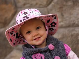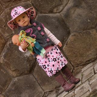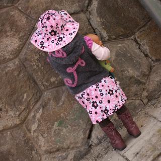 Letní kompletek kloboučku a sukýnky a moje sladká modelka, ale letní náladu kazí kožich a kozačky, aby mi omrzla jen trošku 😀