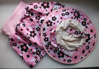 Klobouček už se šil celkem fajn, lemovala jsem ho na zkoušku lemovací gumičkou 😀 Barvy pro @terezita , aby z toho taky něco měla 😀