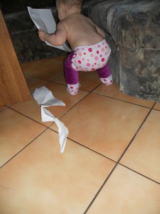 Šila jsem v noci (teda přesvědčit Jasmínu, že její miminko večer má maminka a nemůže ho mít v postýlce, horor!) a připravila mimi ráno Jasmí do postýlky a první zameteně skoro až brečela, že to přece není její mimi, co se mu to stalo a pak najednou "jé" 😢 No a pak mu sundala plínu a zahodila ji. Plínu jsem šila a přešívala asi 3 hodiny, manžel už volal do Bohnic a měl průpovídky typu "ty se asi hodně nudíš" 😀 😀 😀