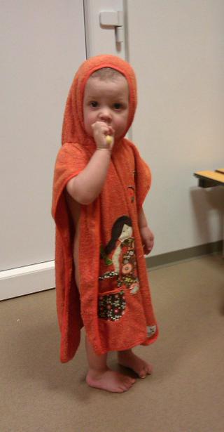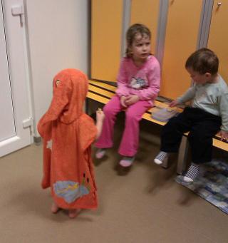 Posíláme pozdrav z plavání a Jasmínky nová pelerínka na plavání nebo jak se to odborně jmenuje. Jako nezasvěcená matka jsem měla vždycky župánek a na plavání všichni chodí v tomto, což je fakt absolutně geniální a geniální to bude v létě k bazénu a vodě. Tak jsem to ušila - froté silné mylly, aplikace velur + dneska přišedší odstřižky z hilca od Ivušky 😀 Výcvaky na modelce jen z mobilu v šatně 😀