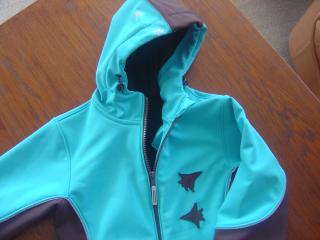7. softshellka pro Iška - podél zipu jsem našila reflexní paspulku, 2 kapsy na patentky