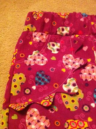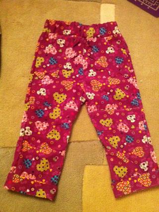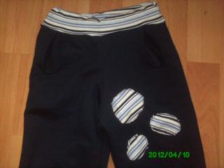 ahoj, po dlouhé době zase něco přidávám, jsou to manšestráčky. Barva je na fotce blbá, je víc do fialova, jako na fotce látky. Kapsy jsou "sluníčkové", je to vidět na detailní fotce. A pěkně jsem se s nima natrápila, protože jsem upravovala střih a poprvé vyšly na dítě tak o půl roku starší, hrozně široké. Tak jsem je střihla ještě jednou, nechápu, jak se mi z metru podařily dvoje, vyšlo to tip ťop 🙂. Ty druhé (tyto) jsou nakonec podle osvědčeného střihu Nonita, akorát jinak vepředu.