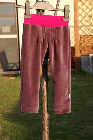 harémky-slimky podle střihu od @caramilla. Jsou z šedého bavlněného veluru, vypadají fakt krásně, jen ty sámečky vepředu se na tom tlustým materiálu šily dost blbě... No ale dítě si je stejně odmítá nechat na sobě, natož se fotit 😠