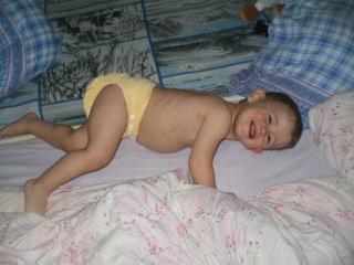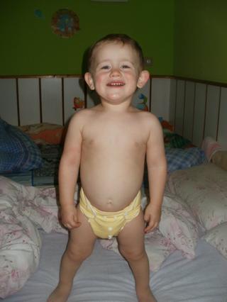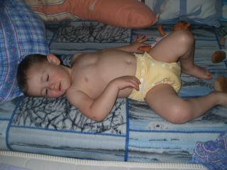 - anavy bambusová na patentky - je tiež výborná, ale neviem sa akosi rozhodnúť - po jednej noci vyhlásim, že ju milujem a hneď čumím na ďalšie vzory že idem objednať ešte jednu, a vzápätí (ako dnes v noci) je v nej malý celý premočený, LL pulky to síce nepustia na oblečenie ale okolo bruška, všade vlhko... čakám, verím, že po viacerých vypraniach bude toto lepšie..