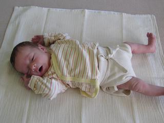 Mala spi vedla mna na kozusine. Na nej pod zadockom maly uterak+poskladana plienka, ktoru menim ak je pocurana. Vyhoda je ze este necestuje, ale byva to tak, ze ked uz dokaze cestovat po posteli dokaze vydrzat aj sucha do rana.