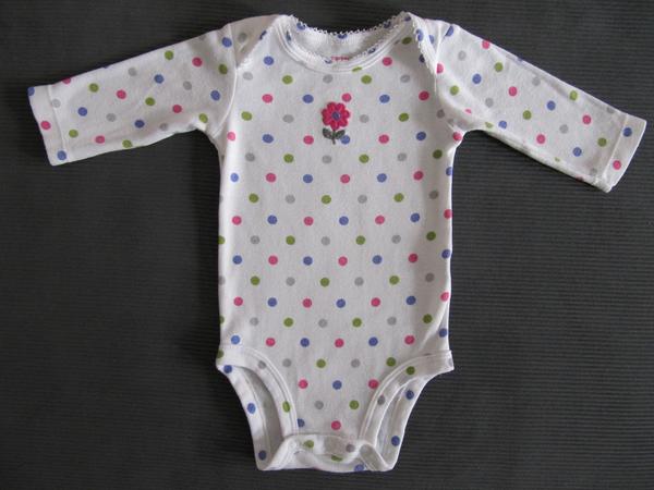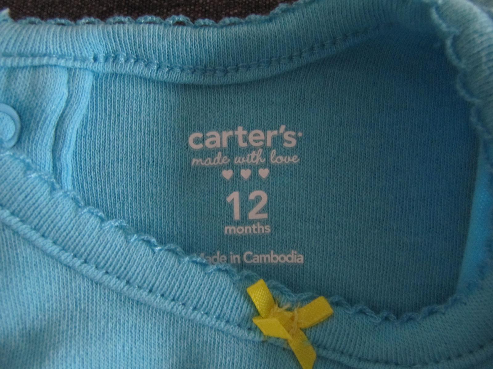 Original body Carters kupis iba na ich internetovej stranke alebo v ich kamennom obchode, body nemaju vzadu na krku nasivane stitky ale maju tam potlac, kde je napisane na kolko mesiacov je body urcene a kde je vyrobene, stitky so zlozenim su vsite vboku, vpredu su viac vykrojene okolo noziciek ako pri inych znackach, takze po zapnuti netlacia, body maju uplne inac vypracovane aj zapinanie naspodku, nez body ostatnych znaciek, zadna cast je olemovana a predna je zapracovana z rubnej strany bielou bavlnenou tkaninou a to aj na farebnych /akurat ze nemam detailnejsiu fotku zapinania/, okrem toho ma Carters svoje specificke vzory na obleceni, hned vies ze to Carters je /staci pozriet ich stranku carters.com/, to co si kupila urcite original nie je, ale aj tak su pekne... A co sa tyka materialov a farbenia, neverim ze vsetky zname znacky pouzivaju setrnejsie farbiva aj napriek tomu ze sa jedna o detske oblecenie. A ked sa aj na znackovych veciach vytvaraju dierky, je to unava materialu, podla mna by sa mozno dalo povedat ze je to mozno az prelezany material. Nedavno mi prisli uplne novucke body Carters /original podotykam - objednane z ich stranky/, a na jednom z nich boli dierky /dokonca pozasivane/, zvyknu sa vytvarat aj v miestach vpichu po ihle /teda vo svikoch/. Objednala som ich lebo maju naozaj dobry strih, su dlhsie a uzsie, poddajne, no a v zasade sa nevytahuju ako vacsina Tesco bodyniek. V konecnom dosledku: znackove ci menej znackove alebo dokonca neznackove, treba si uvedomit ze vsetko su len "handry"...