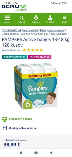 Ahoj dajú sa aj na Alze, ale najlacnejšie vychádzajú akékoľvek pampers v DMke, mesačne balenia mali len do veľkosti 5, tiež som hľadala 6tky ale active baby. Ale keď si to prepočítas, či už Alza, alebo Benulekaren, iné internetové lekárne stále najlepšie ceny DM.