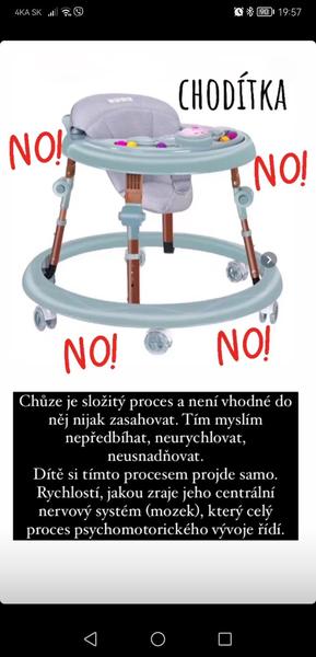. Som fyzioterapeutka a to v žiadnom prípade by som svoje dieta do toho nedala ani na minútu. V niektorých krajinách je to myslím aj zakázané predávať a škodí to dosť. Najlepšie keď necháte dietatko aby sa naučilo chodiť samo… a ani nevodit za ruky. A argumenty že šak x deti v tom vyrástlo a sú zdravé… to by som ani nebrala do úvahy. Mladi ľudia mi chodia na rehabilitáciu a majú postury v katastrofálnom stave, ano určite sa na tom podpísali aj iné veci ale medzi ne patria aj takéto idotske pomôcky. Podľa mna každý normálny rodič, ktorý ma informáciu, ze niečo nejakým spôsobom škodí tak to nerobí..