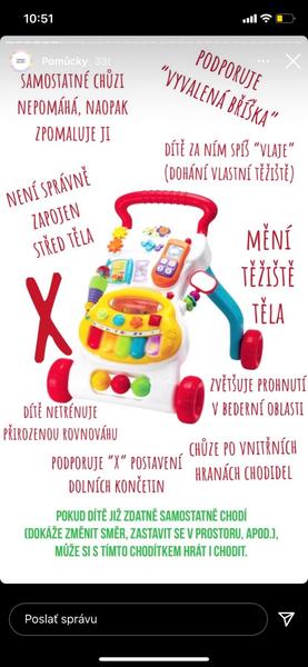 Plus majú zlé návyky pri chodení, ktorých sa celkom dlho veľa detí nevie zbaviť. No a v neposlednom rade z toho už veľa detí vypadlo, známej z toho spadol syn dva krát, raz rozbitá hlava. Stále ho do toho pchala, ale tak to už je asi iný level matky ako ja.
