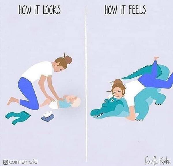 Par dni dozadu sme sa na tom smiali s muzom. Bola to situacia kedy sme 2ja dospely prebalovali 1 dieta s velkostou 74-80. Keby pri tom boji mam este zapinat cvocky na zavinovacom bodynku, tak asi chodi dieta nahe :D.