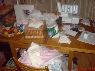 @caramilla Tak to bys byla určitě moc hodná... Já fakt zatím šít neumím a vůbec nevím, do čeho se pustím a jak mi to půjde, tak toho nechcu moc, a proto by se mi zamouvala nějaká ta galanterka (a taky když si člověk na něco vzpomene na poslední chvíli). Nechápu, proč to nemají, podle mě zrovna lastin používá spousta ženskejch, co šijou... No nic... Jinak asi zítra nafotím náš stůl, neb mám pocit, že Tě brzy doženeme - stroj sice máme jen jeden (a zatím na něm šije víc manžel než já), ale zrovna tu na stole vidím látku, te které jsem vystřihovala kousky na aplikace, notebook, terárko s pakobylkama, knihy a x dalších věcí, tak myslím, že až se zítra pustím do šití, bude to fakt žúžo... (ale musím to pak sklidit, jinak mě z toho klepne - jsem pořád ve fázi, že přece za chvíli bude mimčo, tak bychom měli trochu poklidit).