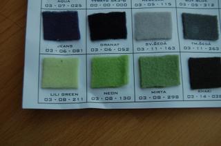 Jen pozor, Wendy teď má trošku nekonzistentní ty typy flísu, většina je "klasický", ale některé mají jakoby spíš velurovou úpravu, jsou tenčí a vzhledově trochu jiné. Naopak jedna tmavá zelená zas byla v úpravě beránek, takže byla jakoby žmolkatá, viz http://www.anavy.cz/fotky7480/fotos/d__vyrd11_9.... Žlutá ze vzorníku (tuším banán) už není, místo ní je mnohem jedovatější žlutá a zrovna v tom "jiném" provedení, viz http://www.anavy.cz/fotky7480/fotos/_vyr_830cit....