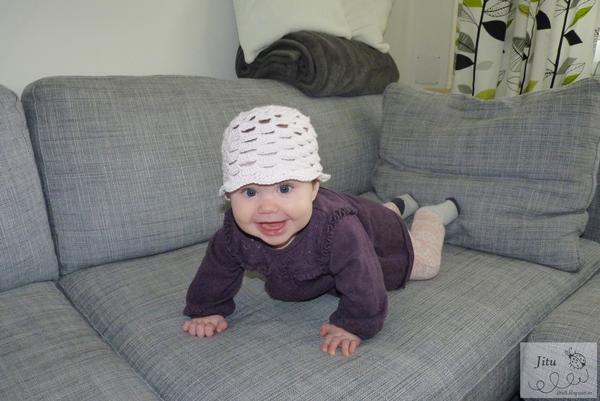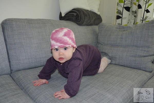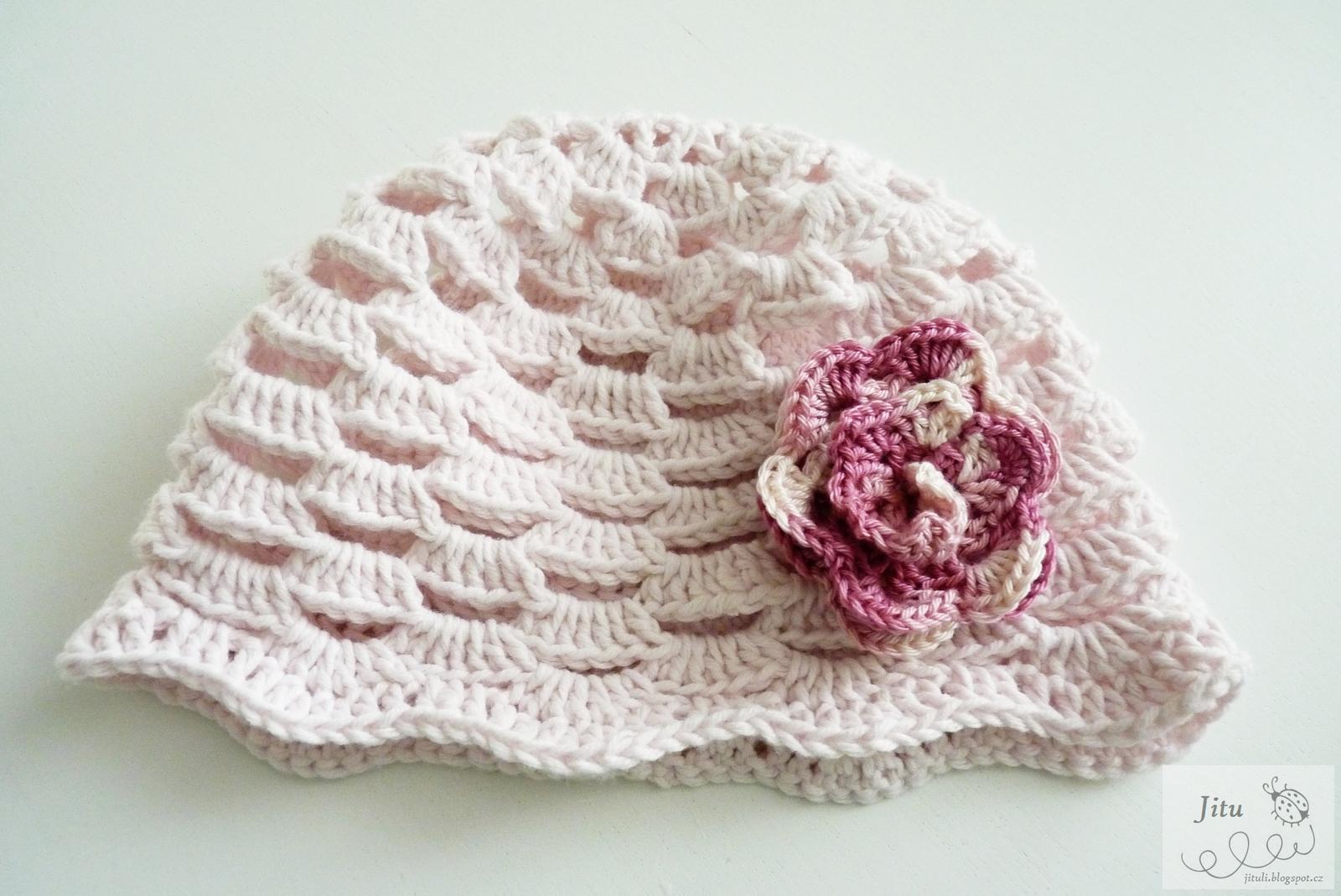 A pak snad nepáteční (i když, kdo ví) - moje háčkovací prvotiny. Melírovaná čepička je úplně první háčkovaná věc v životě, a asi bude rozpárána, neb se mi nelíbí, jak ten vzor vyšel. A ze zbytků kytička. Ale na růžovou jsem hrdá, trefila jsem velikost a vzorek jsem si vymýšlela sama 🙂 A taky mi zabrala už jen 4 dny 😀