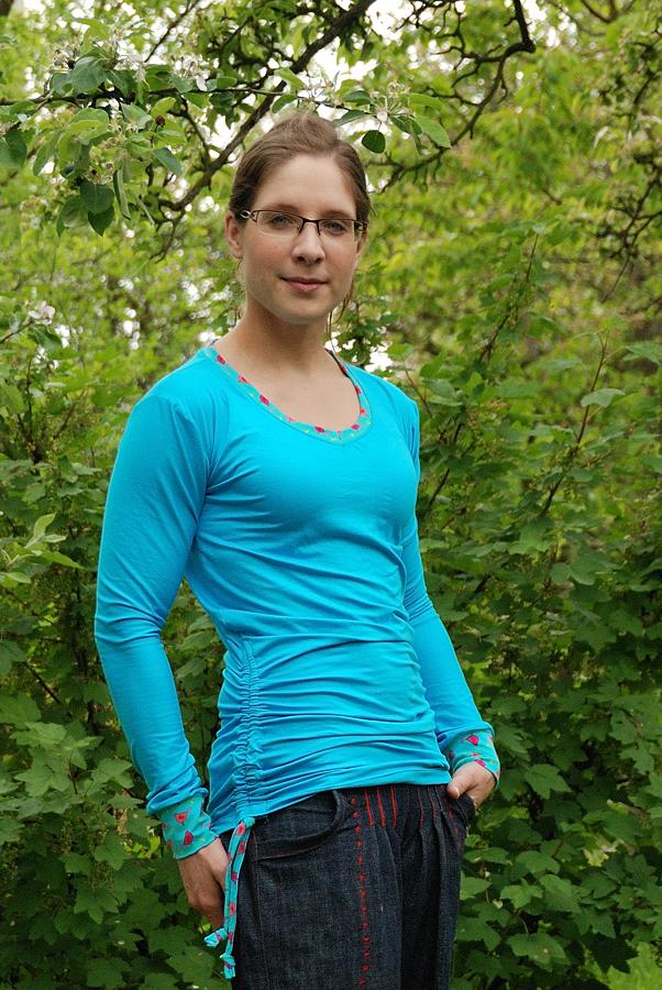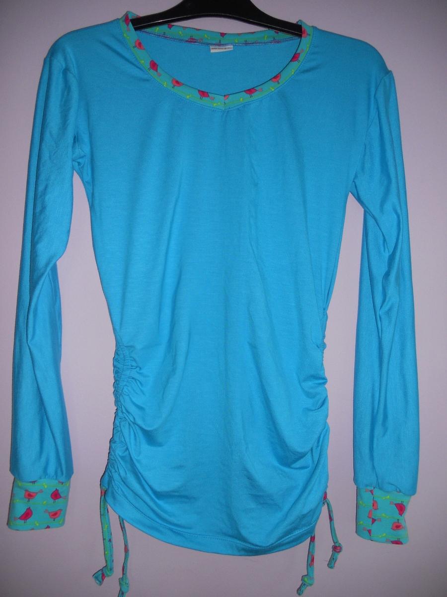 Ještě jsem si ušila triko pro sebe, ale ač je to ta samá velikost jako předchozí trika co už nosím, tak mi nesedí. Chtělo by to větší hrudník, mám tedy dárek pro kamarádku, ta je vybavenější...