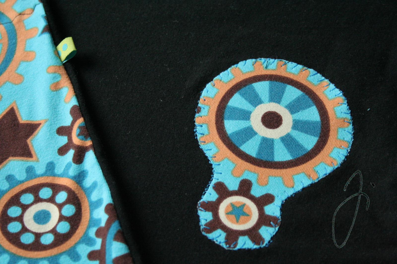 před chvílí jsem dokončila dvě trika pro kluky, jen mi mm řekl, že už má trik hodně, tak ho zkusím nabídnout dál. Je pravda, že kdybych nebyla posedlá látkama, tolik oblečení bych asi nekupovala... Jenže mě se tyhle modrý kolečka ták líbí! 😉 Aplikaci jsem přišila stehem co jsem ještě zatím nepoužívala, ale líbí se mi, tak myslím, že na něj ještě někdy dojde.