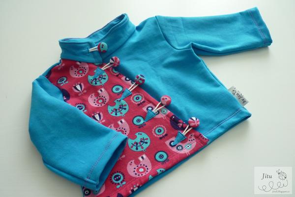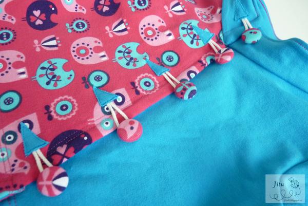 moje nedělní a včerejší veledílo (a dvoje leginky k tomu, když už jsem měla ptáčky venku). Mikinku si vymyslela zákaznice, poslala skicu a "zkus to" 🙂 Víckrát už to nešiju, pokud teda někde nenajdu návod, jak to mám ušít 😠 Nějak jsem se s tím nevěděla popasovat - co dřív, co potom, co s čím... Tak jsem stojáček nakonec nahoře sešívala v ruce. Není křivý, jen křivě vyfocený