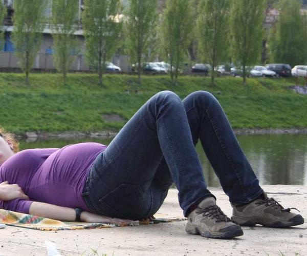 moralistky.. 😀 😀 😀 bylo to v dubnu, byl hic, parilo slunko a mela jsem v tech kalhotech pekne spocenou prdeeel.. 😅 neni to na zemi, ale na vojenskem bunkru 😉 a kosilku jsem fakt nemela, nenosim! 😀