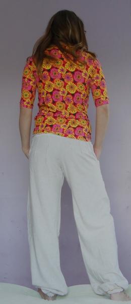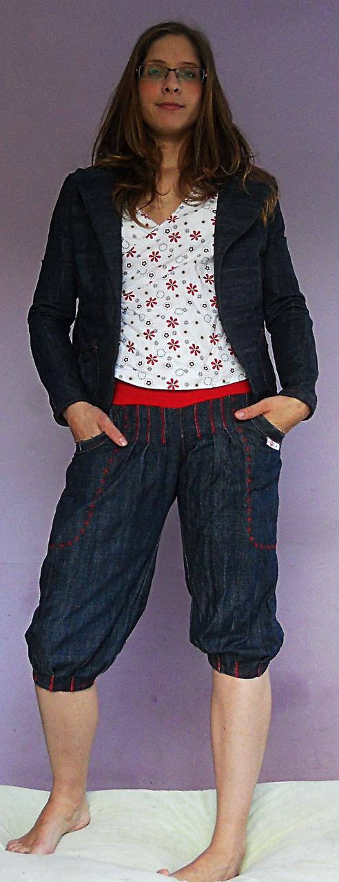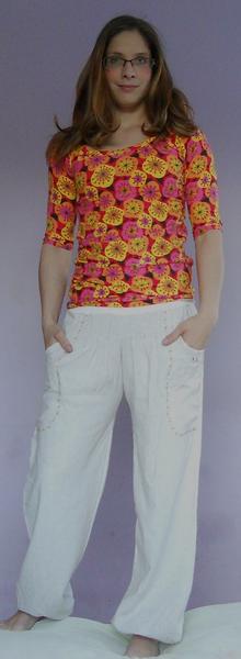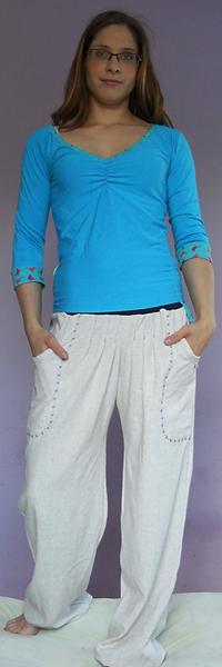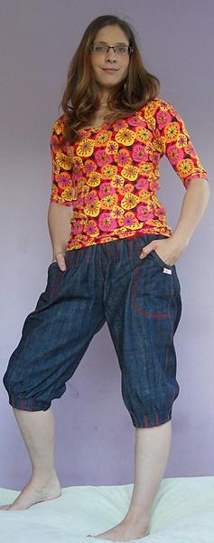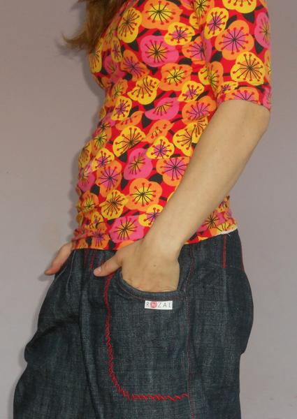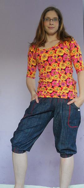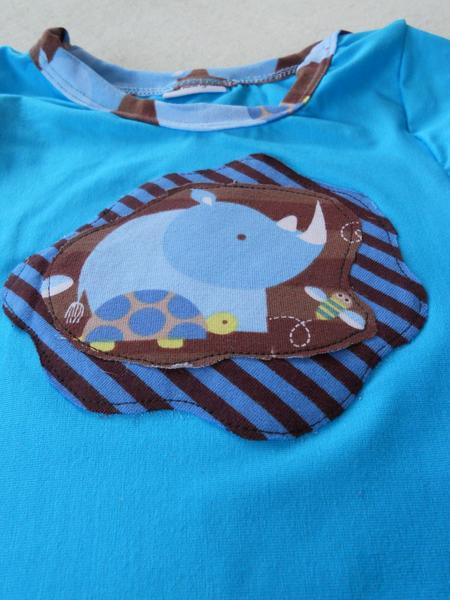 som znechutená z jedného trička tak, že sa mi nič nechce, tri dni som sa trápila s tričkom, čo som minule dávala link z burdy 2/2014, zrejme som si nezvolila dobrý matroš, jednolíc je hrubý na to a prevrátený výstrih je nejak hrubý, lepí sa to na mna, ťahá sa všade, kde nemá..... tak aspon drobcovi som ušila zástenku....
