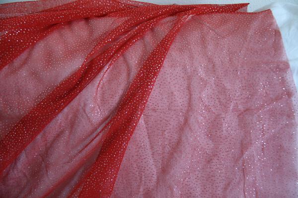 kdyby se někomu líbilo, nabízím ... černá látka - je to něco jako černá organza a na tom sametový vzor, ale nesplývá je spíše tužší (1,50x1m) a červená jemná "síťovina" se stříbrnými tečkami (ale ty lehce opadávají), ta je splývavá, cca 1x 1,1m - tak za symbolickou cenu