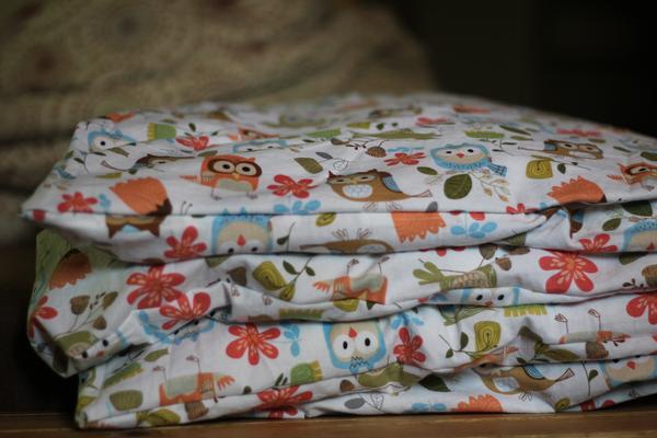 Já během půlhodinky ušila malochům povlak na malou péřovou peřinu, šlo mi to hezky od ruky, tak jsem spokojená: