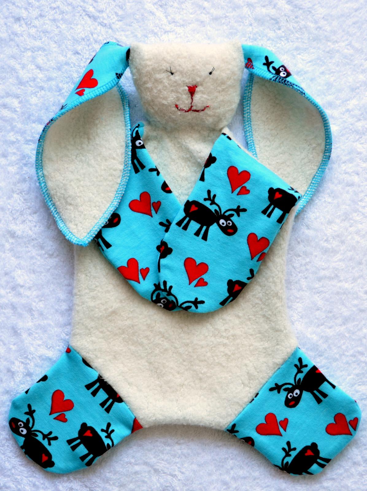 Dovolila jsem si pajcnout usínáčka muchláčka. Dělala jsem něco podobného prvně a netušila, že to zas není tak hrc prc, jak jsem si myslela, zejména vyšívat něco na beránka je fakt lábuž 😝. Kája pak na to kouká a povídá - ale maminko, ten zajíček nemá mrkvičku! 😀