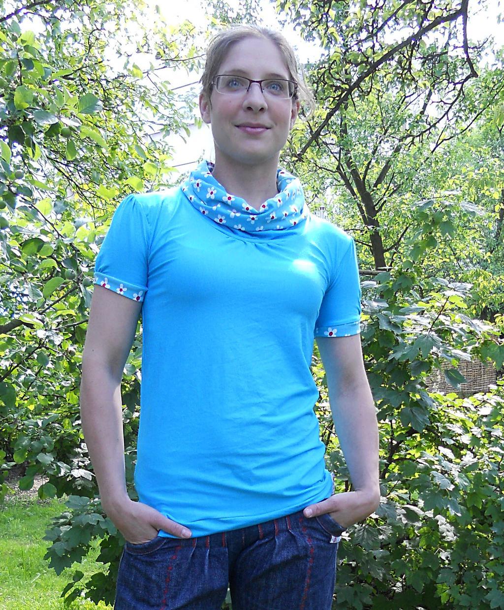 @alenf děkuju za radu, je to vlastně první věc podobného druhu, tak jsem nad výstuhou nepřemýšlela. Navíc jsem si nebyla jistá velikostí, tak jsem radši střihla větší a možná by o číslo menší být mohly, protože pod paždí jsem je zužovala. Nicméně, toto je vel 40, takže se nenechte zmást tím, že uvnitř je někdo hubenej. A na obrázku je měla modelka vel. 50! Právě že jsou takové maskovací 😉.