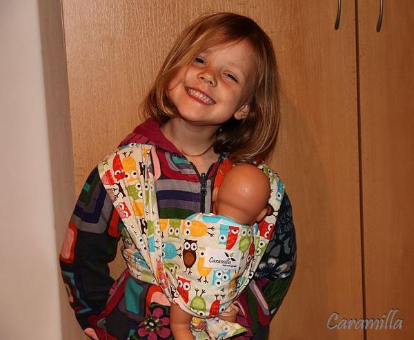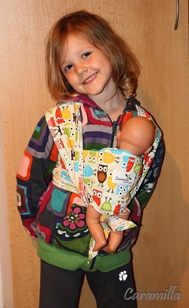 Jasmínka se dneska omotávala punčocháčema, tak jsme zjistily, že i miminko je nošenec a potřebuje šátek (já o tom, že bude nosit taky jsem snila už dlouho, ale nechávala jsem to na ní, až přijde sama, přišla a do 15ti minut měla šátek hotový 😀 😀 😀 ) Ono ti jinak nešlo, ona tak strašně chtěla! 😀 (Je to jen "výšiv", potřebuje delší, ale to až po dovče).