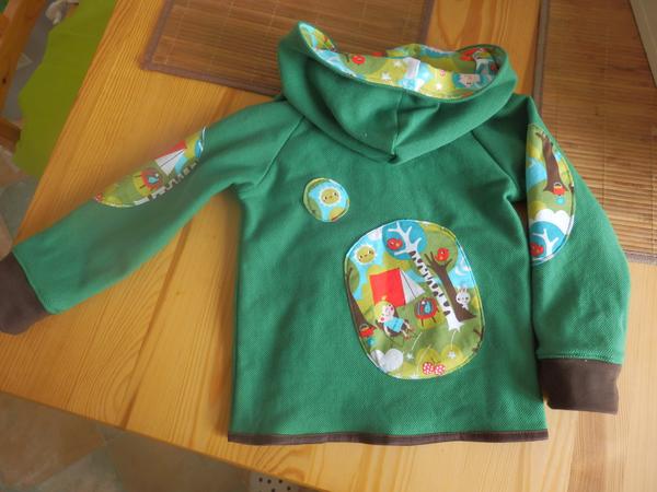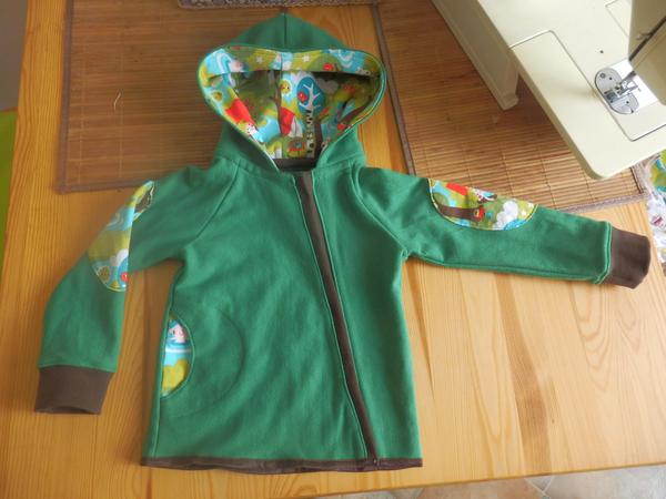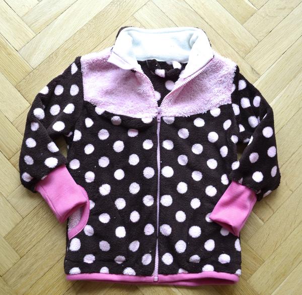 - končim s nákupama látek po půl metru, ve velikosti 110 už je to opravdu problém. Mikiny jsem došila jen díky tomu, že jsem doma vyštrachala zbytek růžové lamy, který padl přesně na předek a kapsy. Rukávy u hnědé mikiny byly krátké, ale už nebyla ani ta lama, tak mají metrové náplety 😀