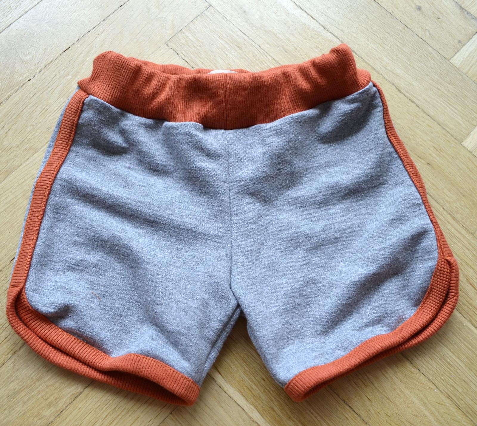 - kraťasy pro prcka jsem šila z kraťasů, na kterých jsem tu nedávno demonstrovala olemování, kdy je spodek lemu na OL a prošité dvojjehlou (měly modrý lem). Měly tak šílený střih, dítko v tom vypadalo, jako by mělo třmínky kvůli kyčlím, tak jsem je rozpárala, vystříhala z nich, co šlo a výsledek je daleko lepší. Akorát jsem já blb našila předek pasu dozadu, měla jsem tam i hezky našitou cedulku mamafactory...tak jsem ji odpárala a dozadu dala tu od @zuzkasim, aby to manžel poznal 🙂