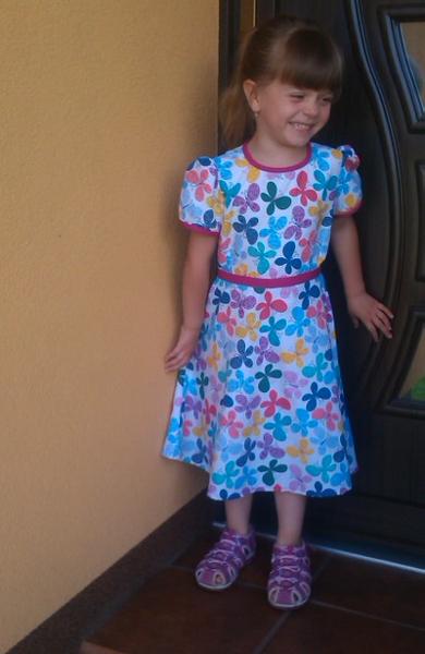 Tak jsem prošvihla páteční DD, rozhodně to tam ale patří 😝. Konečně jsem se dostala k tolik plánovanému šití pro starší cácorku do školky... zatím první vlaštovky, dostávám se do toho pomalu a hlavně mě prcek moc nenechá 😖. Nějak se mi podařilo střihnout zadní díl u šatiček delší, tak jsem ho tak nechala, uvidíme, jak to bude vypadat oblečené. V nejhorším obroubím ještě jednou. A pak stále nejsem spokojená s pasem u těch legín, asi to chce prostě cvik. Do toho se mi krásně zablokoval krk, takže v noci jsem už tu zoufalá bolestí hledala polštářek s třešňovými peckami a od rána tu chodím v tom vedru v límci. Jdu vylosovat další látky, snad se mi podaří ještě dnes aspoň něco nastříhat... Omlouvám se, bojuju s nastavením barev, ty fotky jsou prostě divný... A taky jsem si musela znovu nainstalovat font, a nefunguje mi kurzíva, tak jsem musela trochu změnit vodoznak...
